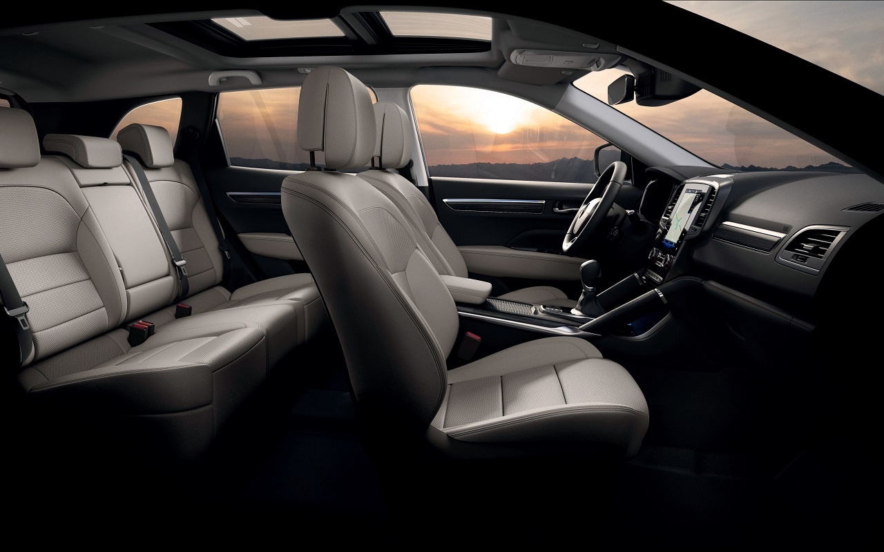 Все Grand Koleos оснащены тремя экранами в салоне: цифровая приборная панель 10,2 дюйма, мультимедийный дисплей 12,3 дюйма и такой же экран для переднего пассажира.
