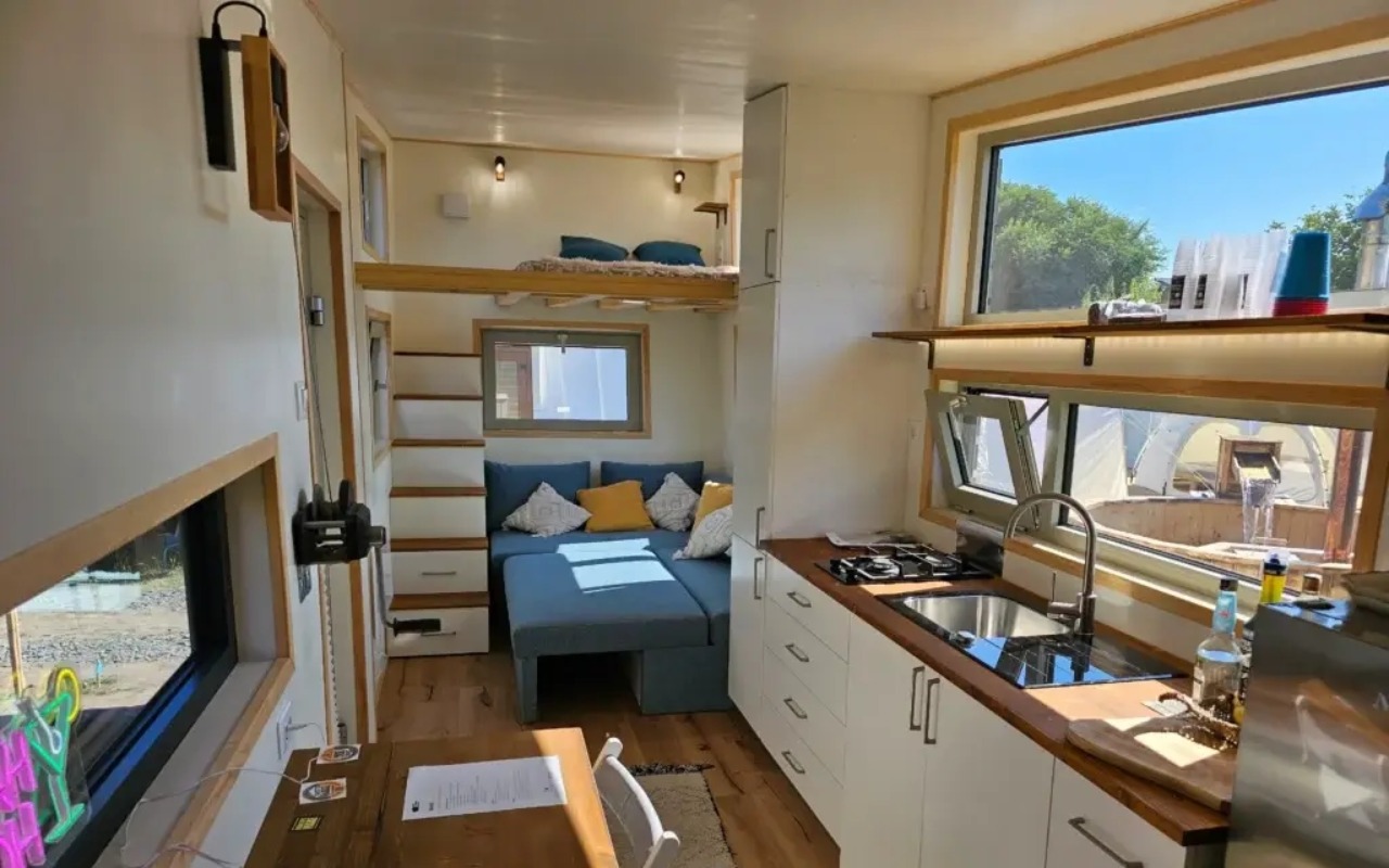 Внутри крошечного, но продуманного пространства нашлось место для всего необходимого: от функциональной кухни до эргономичной зоны отдыха.