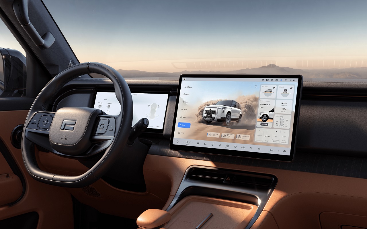Режимов движения семь: дорога, снег, авто, горы, грязь, песок и брод. И это не просто маркетинг – они реально меняют поведение. Настраивается отклик руля, моторов и работа адаптивной пневмоподвески. Полный привод на электромоторах срабатывает мгновенно, без задержек вискомуфт. На заснеженных просторах Монголии это вселяет уверенность – машина не подведёт. Суммарный крутящий момент в 740 Н·м позволяет заехать на склон крутизной 45°, а максимальная глубина брода составляет 700 мм.